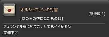 皆様も是非、クエストアイテムやその他のアイテムでもそのまま渡したりぽいぽいしたりせずにカーソルをあてて一度読んでみてくださいね・・・!