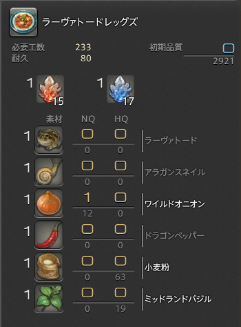 【FFXIV】FF内の料理のレシピを見てるとお腹が空いてくる・・・