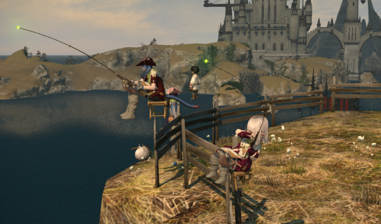 最初周りの人が写っているSSだから載せるのやめようかなーと思ったのですがよく見るとお隣さんのミコッテさんの漁師AF服の色がおそろいだったので載せてみました(=´∀`)人(´∀`=)